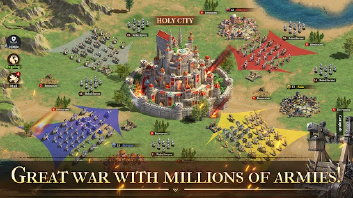 Construct a city to accumulate resources and train soldiers rapidly. Thousands of forces combined with unique Heroes makes the battle variable and fun. Dispatch troops to capture cities and loot wealth. Make your kingdom stand out worldwide!